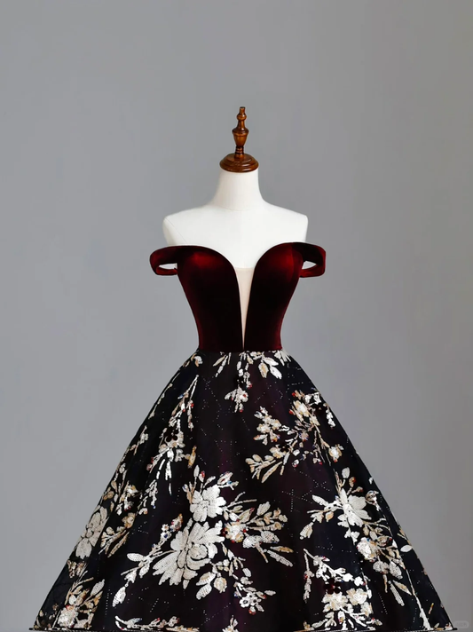 Gorgeous A line Off The Shoulder Burgundy Long Prom Dress Party Dress Graduation Dresses DP1567
