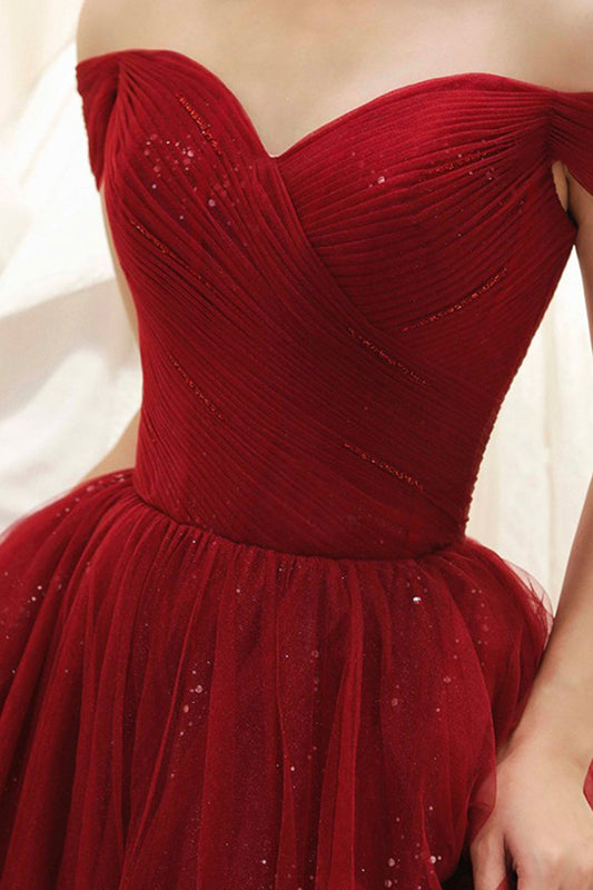 Burgundy Tulle Sequins Long A Line Prom Dress Evening Dress fg4234