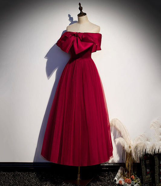 Burgundy tulle prom dress one shoulder evening dress SH279