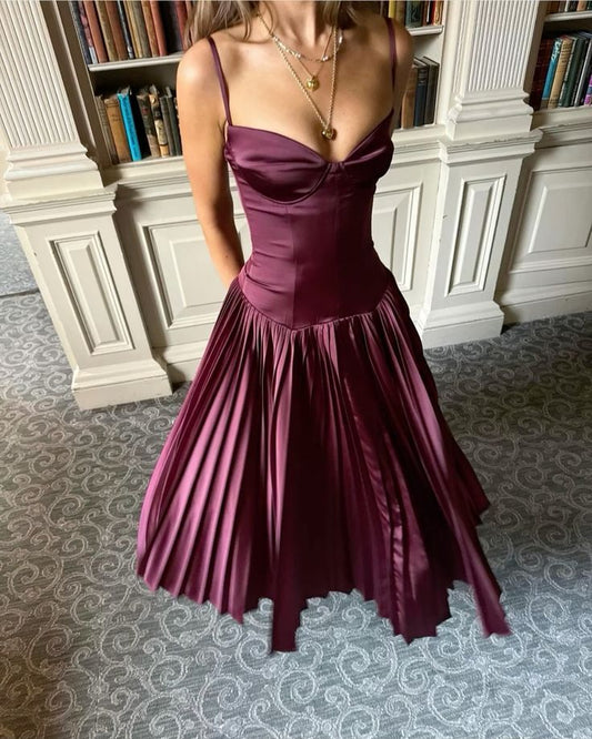 Beautiful A line Spaghetti Straps Burgundy Long Satin Party Dresses Prom Dress SD2024