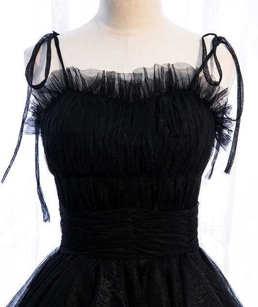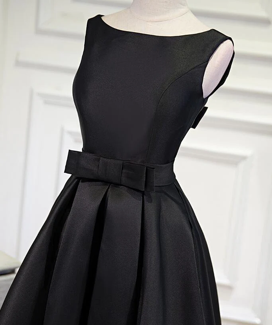 Black elegant cute simple knee-length mid-length satin homecoming dress prom dress evening dress party dress gh188