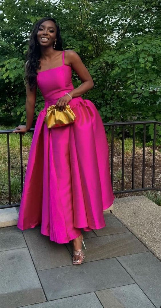 Fuchsia Spaghetti Straps A-Line Satin Long Formal Party Dress fg7476