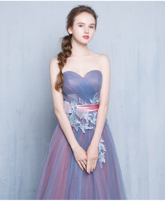 Cute sweetheart neck tulle long prom dress, evening dress 7771