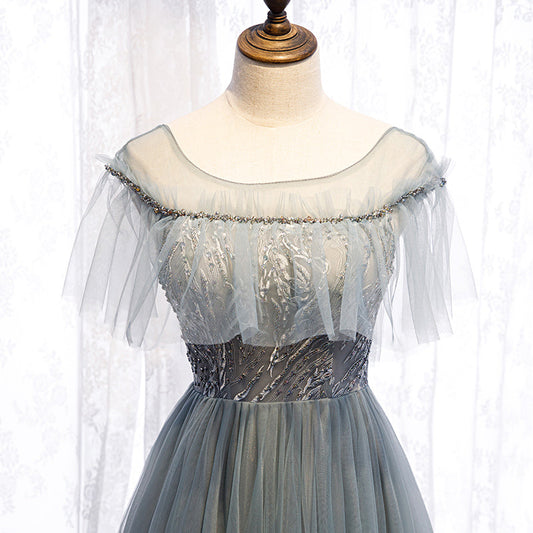 Gray tulle beads prom dress evening dress 8378