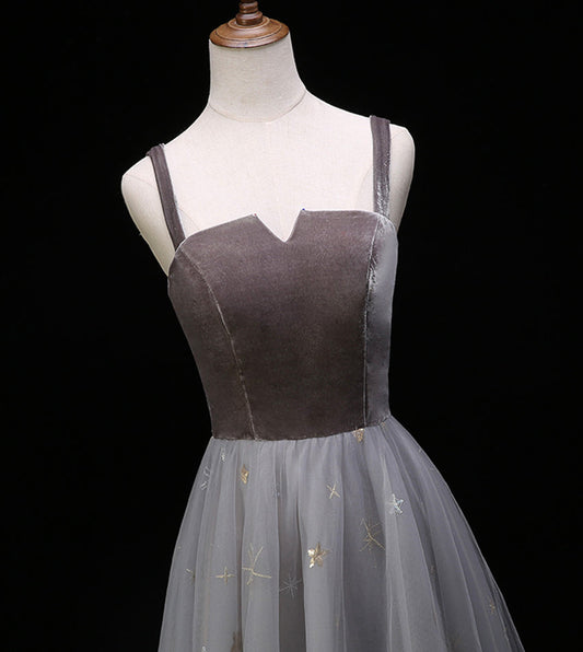 Gray velvet tulle prom dress evening dress 8390