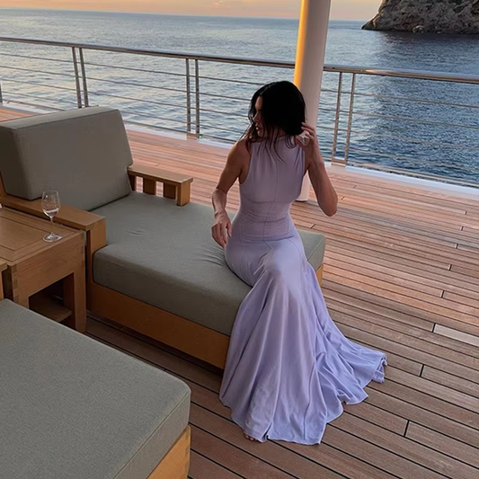 Classy Mermaid High Neckline Lilac Long Evening Dress Prom Dresses SD2062