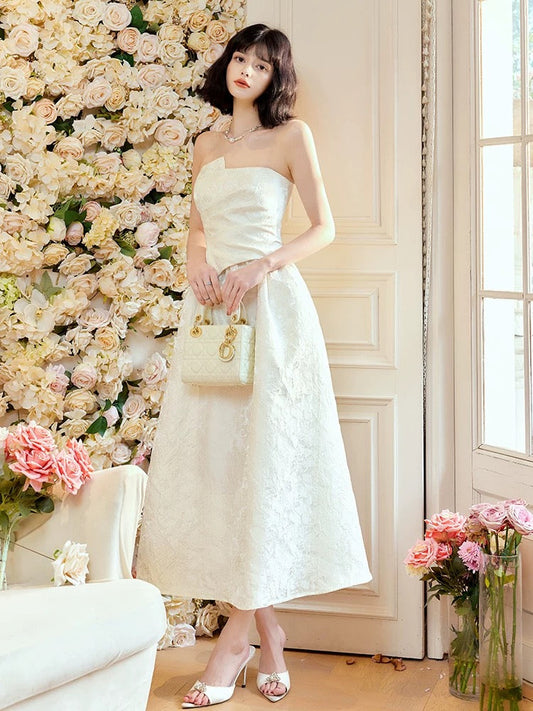 Pretty A Line Strapless Neckline White Ankle Length Evening Dress Prom Dresses SD2818