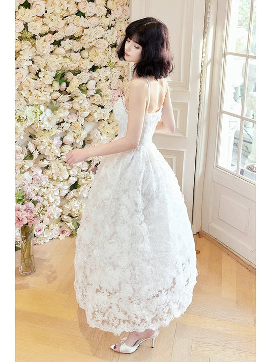 Pretty A Line Spaghetti Straps White Lace Long Length Evening Dress Prom Dresses SD2810