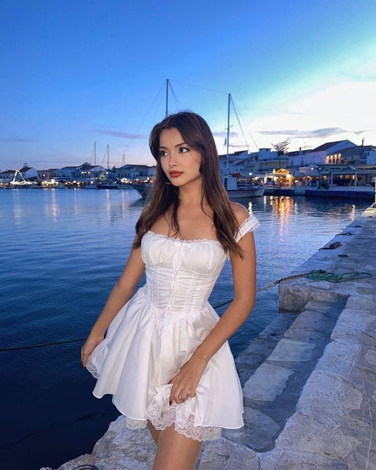 A Line White Lace Off Shoulder Short Evening Dress Cocktail Dresses Short Party Dress fg7881