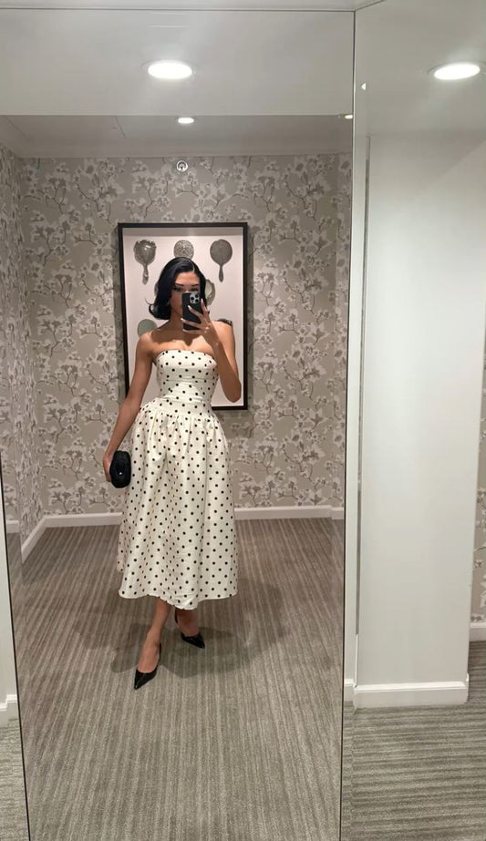 A Line Black Polka Dots Prom Dresses New Arrive Party Dress Evening Dress fg7883