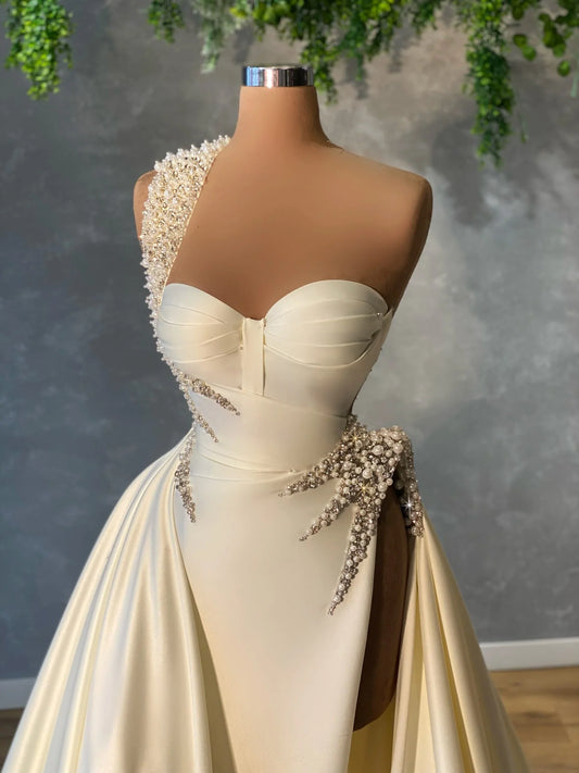 One Shoulder Pearls Satin Bridal Gown evening dress gh2567