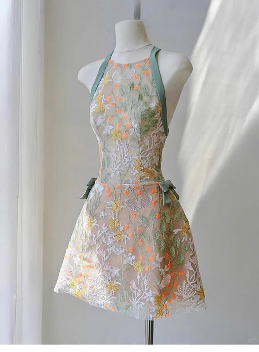 Pretty A Line Halter Green Lace Short Mini Formal 8th Grade Homecoming Dresses Summer Middle School Hoco Dress Homecoming Outfits DH1004