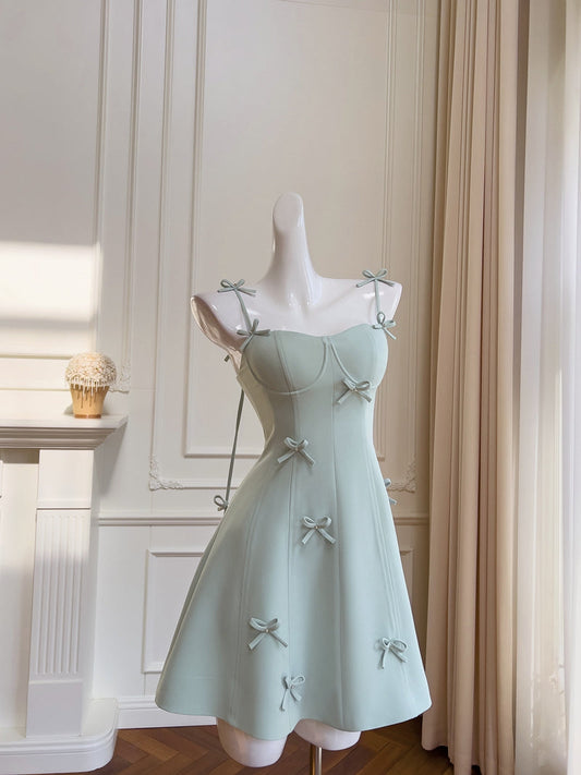 Pretty Green Satin Bow Short Birthday Outfits Strapless Homecoming Dress S443
