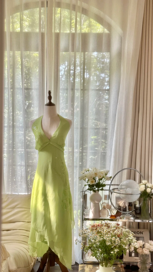 Gentle A Line Halter Beaded Green Chiffon Open Back Party Dress Homecoming Dress SH2936