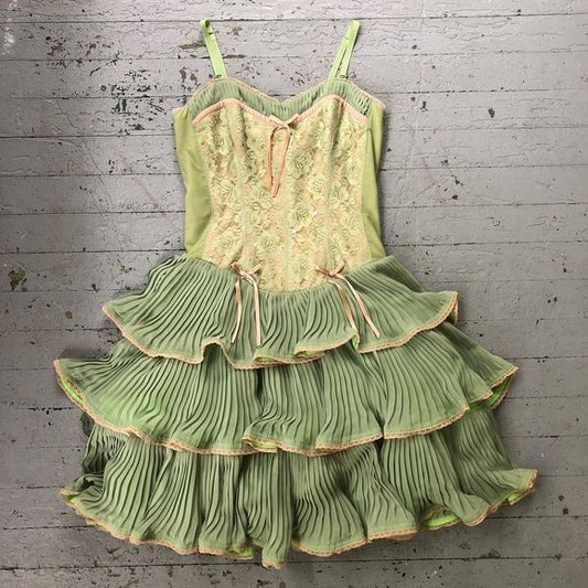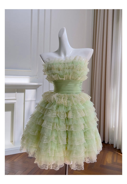 Green pink sweet spaghetti strap layered short lace tulle homecoming dress prom dress evening dress birthday party dress gh3463