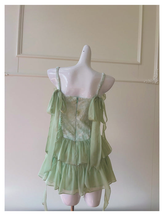 Barbie Raquel A Line Spaghetti Straps Green Lace Short Outfit Homecoming Dress SH1808