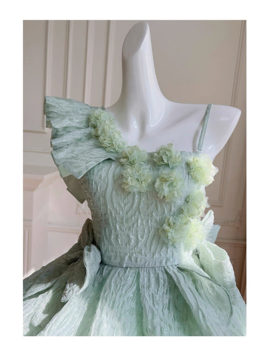 Beautiful Green Spaghetti Strap Chiffon Bow Irregular Homecoming Dress P3416