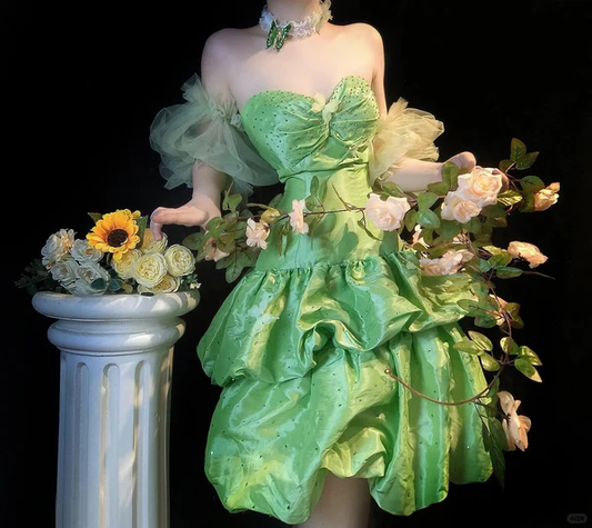 Classy Sweetheart Neck Lemon Green Sheath Cocktail Dress Strapless Short Birthday Dress Homecoming Dress S711