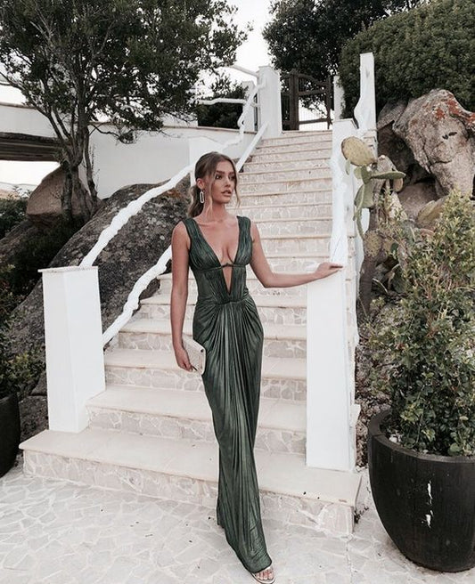 Sexy Sheath V neckline Green Long Prom Dresses P1768
