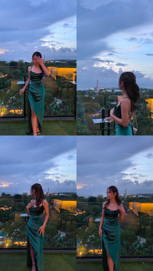 Spaghetti Straps Green Sexy Prom Dress Long Evening Dresses With Split cg25333