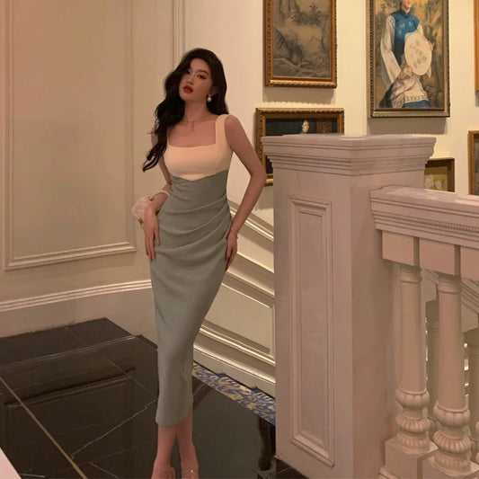 Sexy Sheath Halter Green Satin Date Night Dress Prom Dresses Birthday Outfits SD763