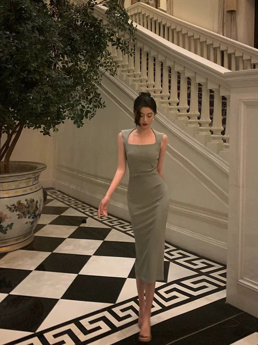 Retro Sheath Halter Green 20th Birthday Dress Long Prom Dress Birthday Outfits For Women DP2072