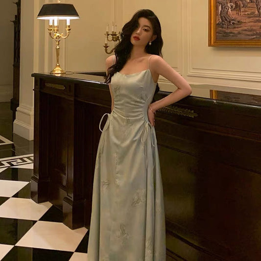 Retro Mermaid Spaghetti Straps Green Prom Dresses Birthday Outfits With Flower SD537