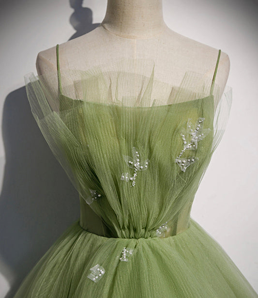 Green Tulle Long Prom Dress, New V-Neckline Straps Long Party Dress gh286