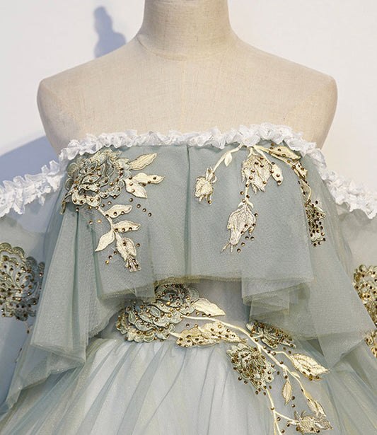 Green tulle lace long prom dress A line evening dress 10366