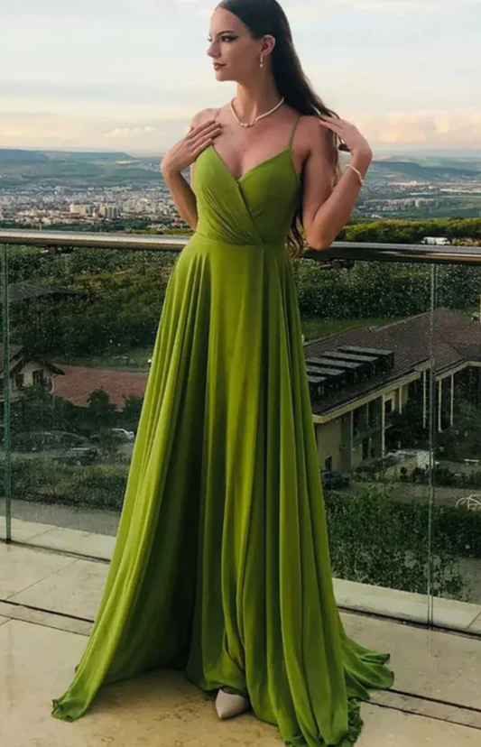 Green Long Prom Dresses,High Slit Evening Dresses SH847