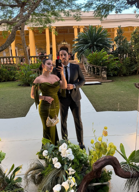 Elegant Mermaid Off the Shoulder Green Velvet Long Prom Dress Evening Dress SH2023