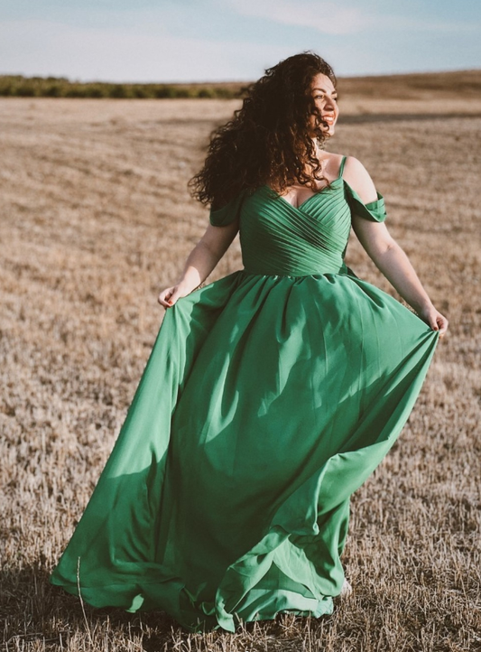 Elegant A line Long Green Prom Dress 22th Birthday Outfits P2136