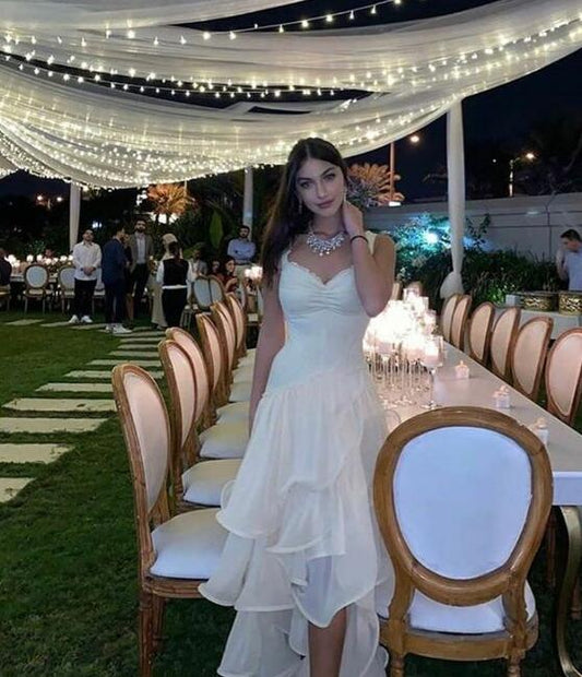 Gorgeous High Low Scoop Ivory Prom Dresses Formal Summer Wedding Guest Dresses Wedding Guest Outfits DP768