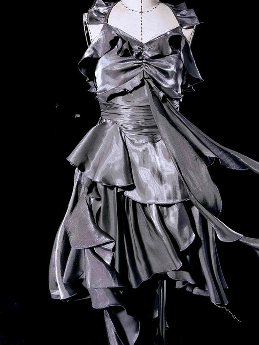 Retro High Low Irregular Spaghetti Straps Gray Short Prom Dresses Birthday Outfits SD490