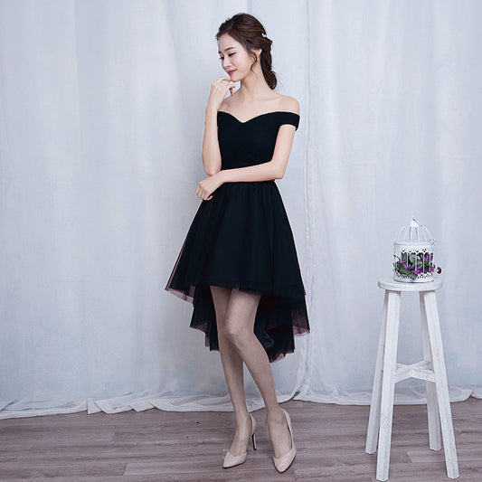 Black tulle lace high low prom dress party dress 8743