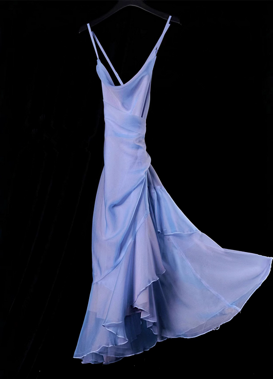 Retro High Low Irregular Spaghetti Straps Blue Knee Length Prom Dresses Birthday Outfits SD488
