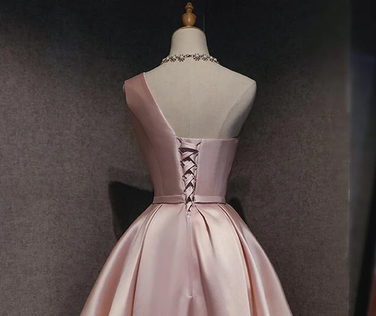 Pink Satin One Shoulder Homecoming Dress, Knee Length Prom Dress gh853