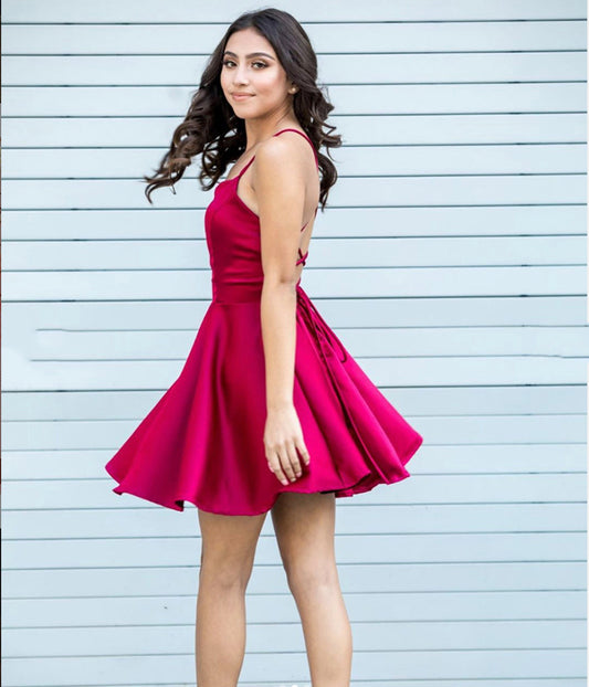 Red/Pink/Yellow/Blue Cute Off Shoulder Short Elegant Satin Prom Dress Homecoming Dress Party Dress 8211