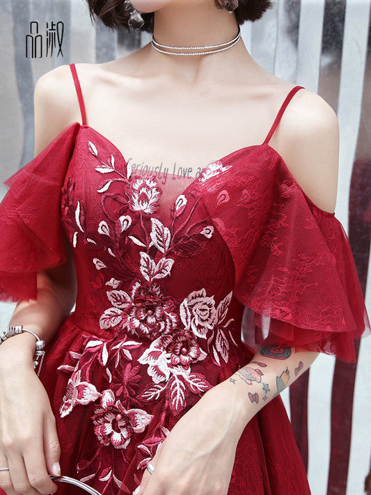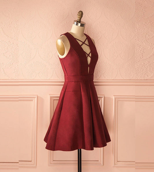 Cute burgundy tulle short prom dress homecoming dress 8252
