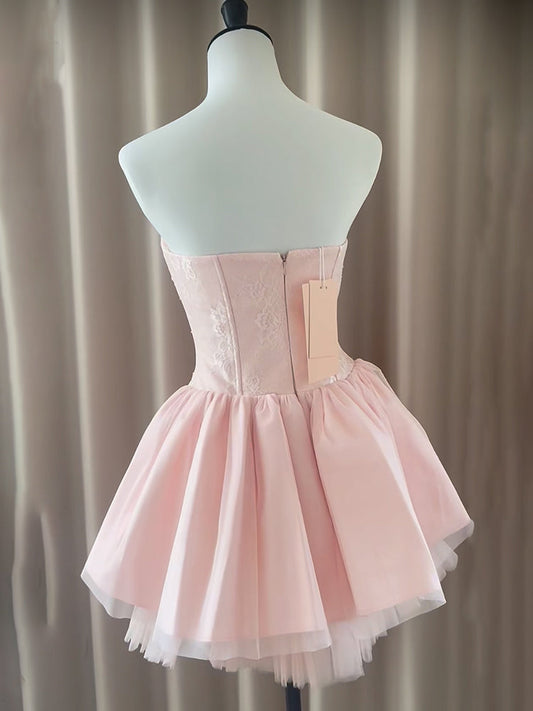 Sexy Pink Strapless Lace Open Back Mini Homecoming Dress P3636