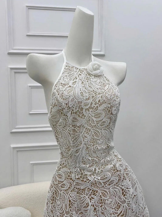 Pretty A line Halter White Lace Short Formal 8th Grade Homecoming Dresses Summer Middle School Hoco Dress Homecoming Outfits DH425