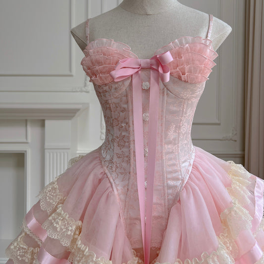 Pink Retro Elegant Sweet Short Sleeve Long Ruffles Backless Lace-up Long Satin Evening Dress Birthday Party Dress Homecoming Dress gh3144