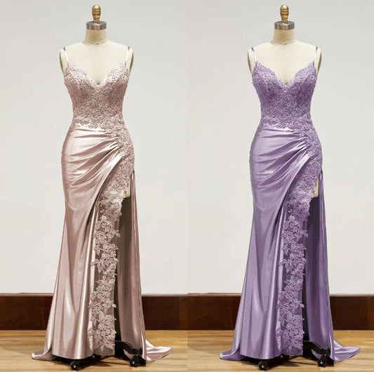 Elegant Blue🩵 Spaghetti Strap Mermaid Gown for Prom&Party Sleeveless Satin Vintage Formal Evening Dress ED01407