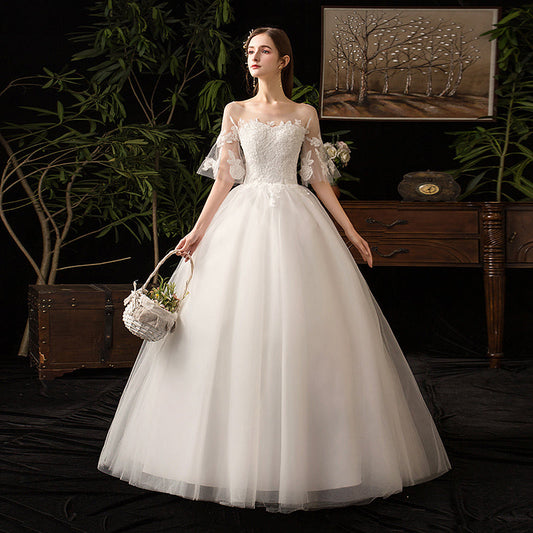 White Strapless Tulle Lace Vintage Wedding Dress Gorgeous A-Line Long Prom Dresses ED02191
