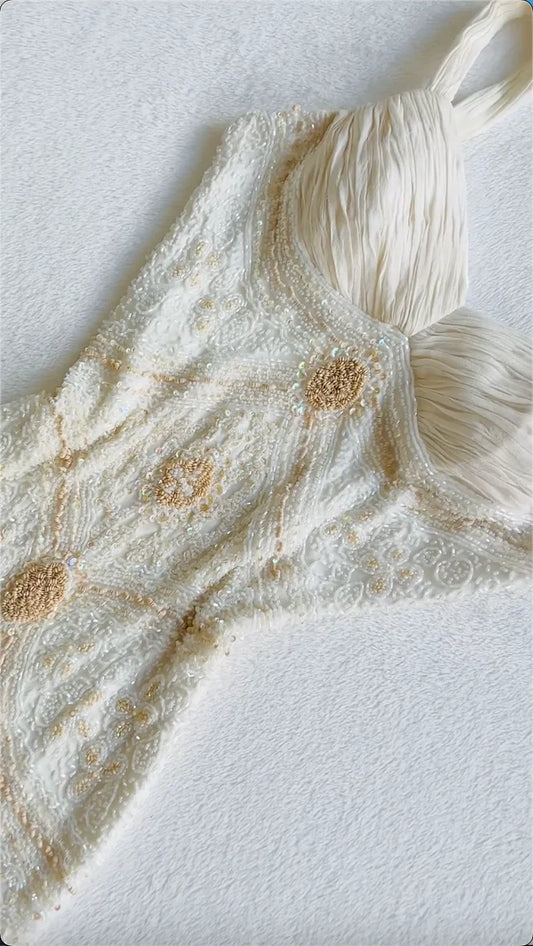 Vintage Gorgeous A Line StraP Beaded Ivory Chiffon Prom Dress Evening Dress SH2307