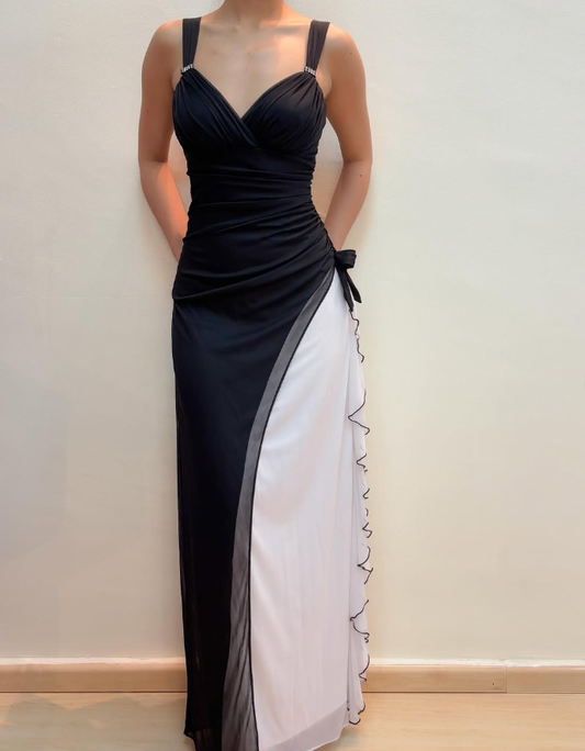 Unique Sheath Spaghetti Strap Black White Chiffon Prom Dress Evening Dress SH2222