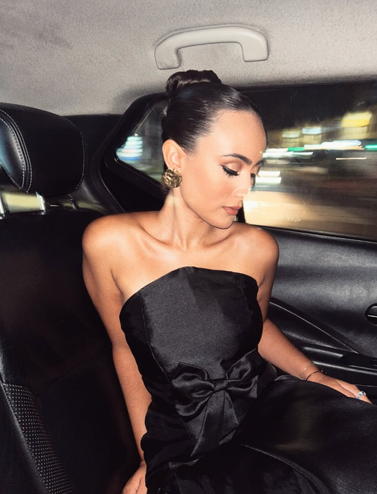 Unique Mermaid Strapless Black Tulle Satin Long Prom Dress Evening Dress with Bow SH2266