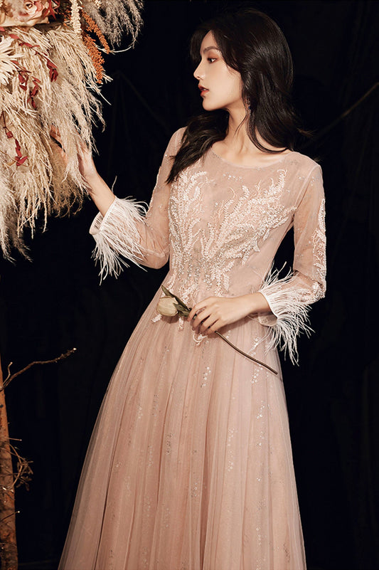 Stylish tulle sequins prom dress long sleeve evening dress 10028