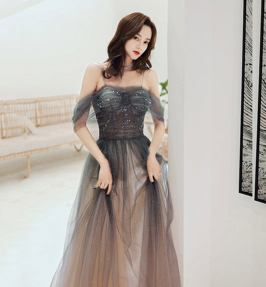 Stylish tulle sequins long prom dress evening dress 8714