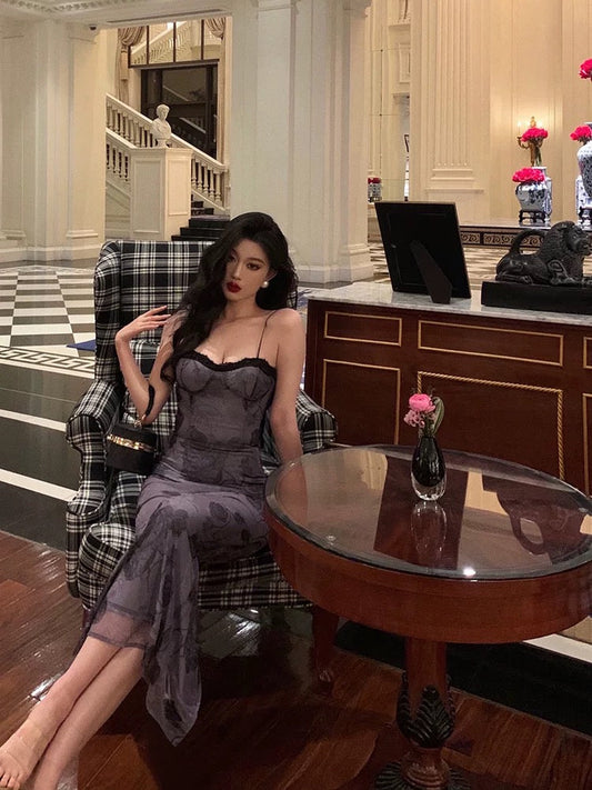 Stunning Sheath Spaghetti Straps Long Date Night Dress Prom Dresses Birthday Outfit SD824